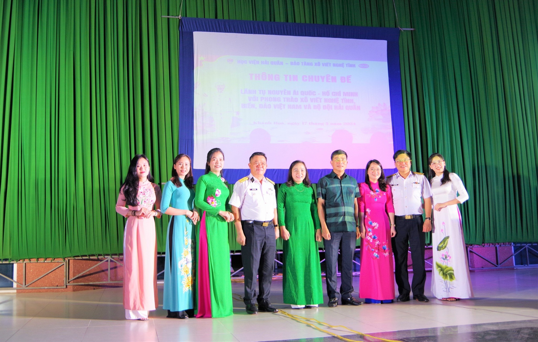 Nhân dịp kỷ niệm134 năm Ngày sinh Chủ tịch Hồ Chí Minh (19/5/1890-19/5/2024) và 113 năm Ngày Bác Hồ ra đi tìm đường cứu nước (05/6/1911-05/6/2024), được sự đồng ý của Cục Chính trị Hải quân, tối 17/5, tại thành phố Nha Trang, tỉnh Khánh Hoà, Học viện Hải quân phối hợp với Bảo tàng Xô viết Nghệ Tĩnh (XVNT) tổ chức thông tin chuyên đề “Lãnh tụ Nguyễn Ái Quốc - Hồ Chí Minh với phong trào XVNT, biển, đảo Việt Nam và bộ đội Hải quân” cho hơn 2.000 cán bộ, học viên.