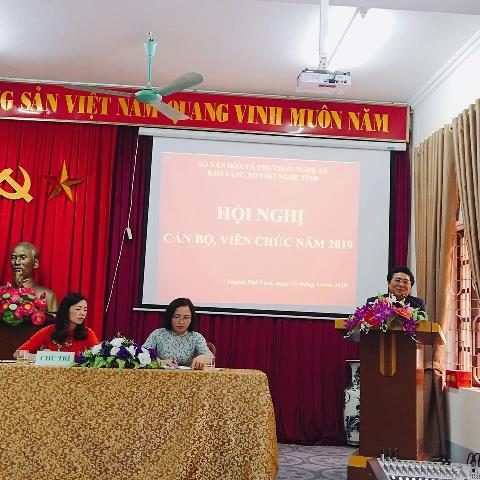 Chiều ngày 15/01, Bảo tàng Xô Viết Nghệ Tĩnh đã tổ chức Hội nghị cán bộ, viên chức năm 2019. Tham dự Hội nghị có đồng chí Hồ Mậu Thanh – Giám đốc cùng đại diện lãnh đạo các phòng, ban Sở Văn hóa – Thể thao, Công đoàn Viên chức Nghệ An, Phòng PA83 Công An Tỉnh và toàn thể cán bộ, viên chức Bảo tàng Xô Viết Nghệ Tĩnh.
