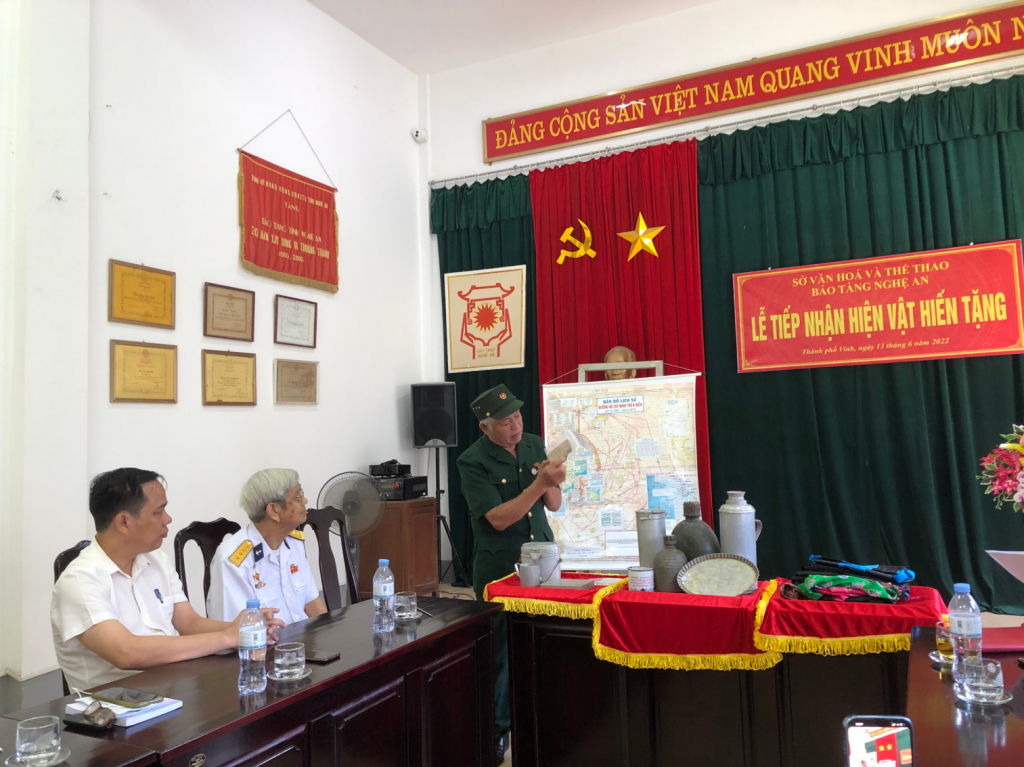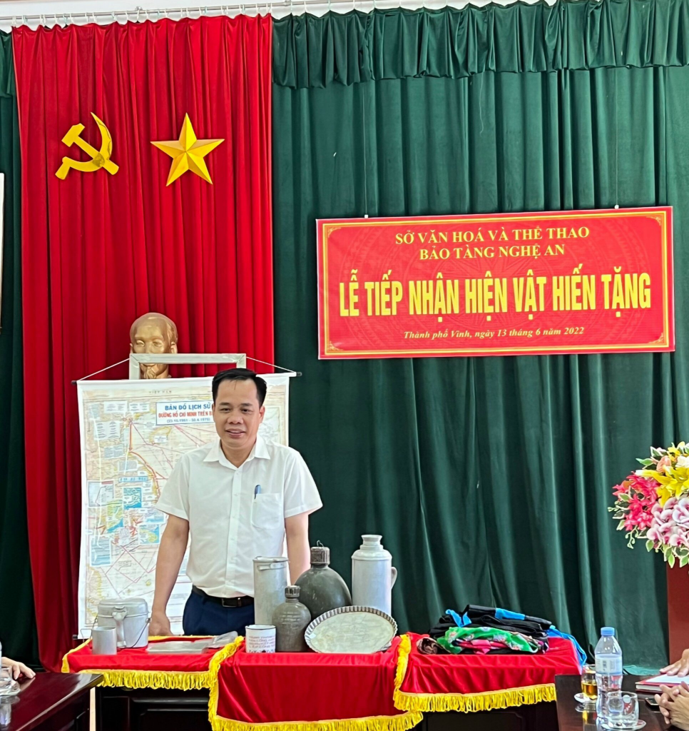 Phát biểu tại buổi lễ, đồng chí Bùi Công Vinh - Phó Giám đốc Sở Văn hóa và Thể thao hoan nghênh, ghi nhận các cá nhân hiến tặng hiện vật và khẳng định đây là những hiện vật quý góp phần bổ sung, làm phong phú hơn cho công tác trưng bày tại Bảo tàng Nghệ An. Đồng thời đề nghị Bảo tàng Nghệ An tiếp tục trân trọng, nâng niu, bảo quản tốt các hiện vật để phục vụ công tác trưng bày và phát huy giá trị.