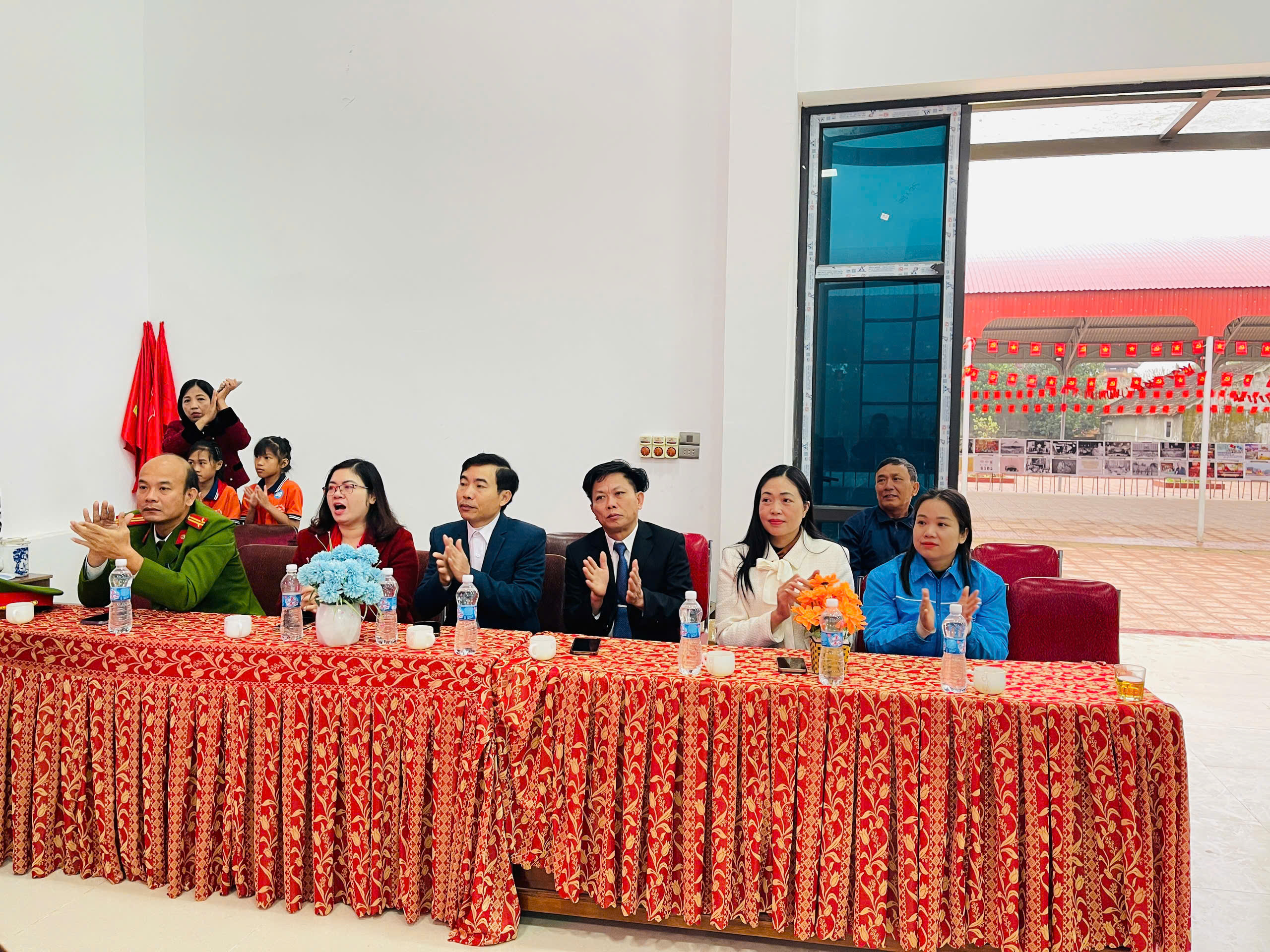 Tham dự chương trình có đại diện lãnh đạo Đảng ủy, UBND, MTTQ, Công an xã cùng Ban Giám hiệu, các thầy cô giáo và đông đảo học sinh tham gia dự thi và cổ vũ.