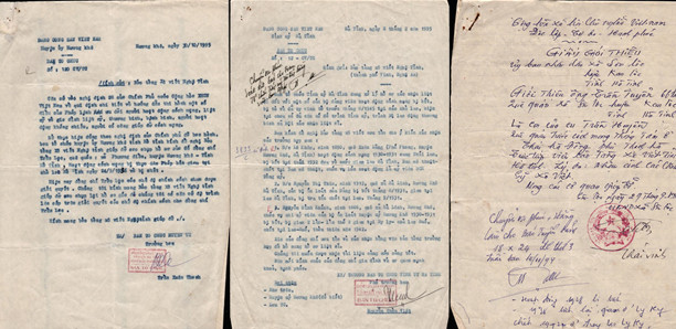 Ảnh: Những công văn, giấy giới thiệu được gửi đến Bảo tàng Xô viết Nghệ Tĩnh