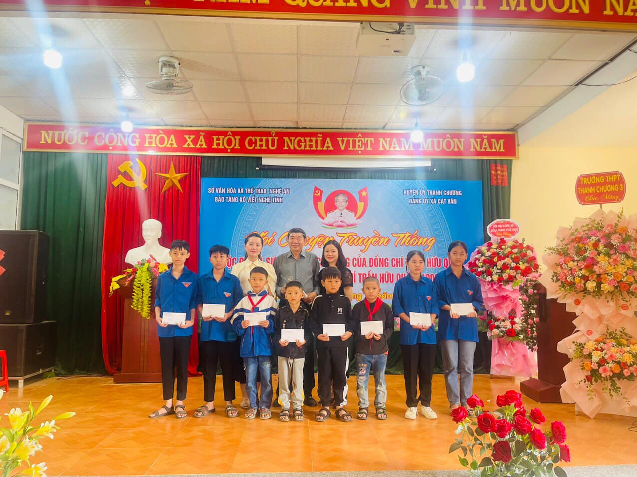 Sáng ngày 10/11/2024, nhân kỷ niệm 115 năm Năm sinh đồng chí Trần Hữu Quán, cán bộ tiền bối của Đảng (1909-2024), Bảo tàng Xô Viết Nghệ Tĩnh phối hợp với Đảng ủy xã Cát Văn, huyện Thanh Chương tổ chức Nói chuyện truyền thống với chủ đề: “Cuộc đời và sự nghiệp cách mạng của đồng chí Trần Hữu Quán” và Trưng bày lưu động chuyên đề “Phong trào Xô viết Nghệ Tĩnh 1930 – 1931”.