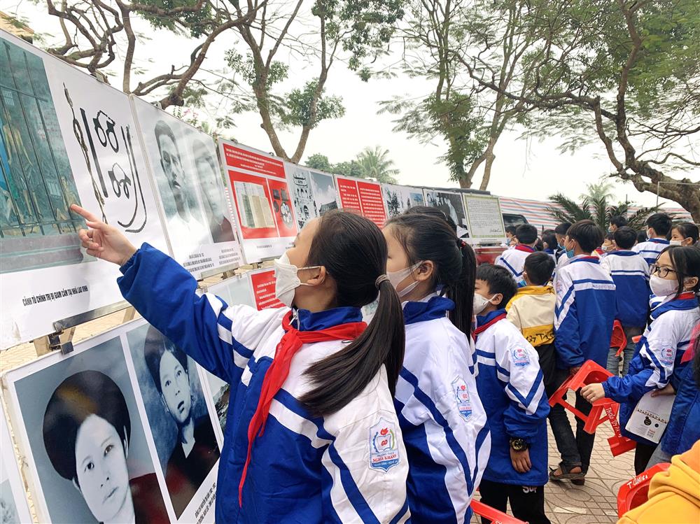 Ảnh: Các bạn học sinh THCS Nghĩa Khánh tham quan trưng bày chuyên đề “Xô viết Nghệ Tĩnh 1930-1931”