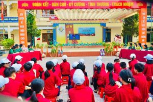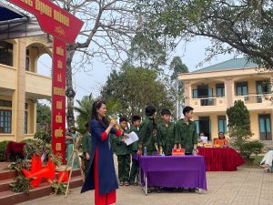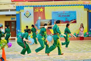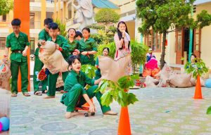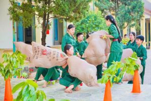 Trò chơi “Tiếp bước anh bộ đội cụ Hồ” Các đội chơi sẽ trải qua một hành trình vượt chướng ngại vật, mô phỏng quá trình hành quân của bộ đội. Thông qua trò chơi, học sinh không chỉ rèn luyện thể chất mà còn cảm nhận được tinh thần kiên trì, ý chí sắt đá của các chiến sĩ trong những năm tháng đấu tranh giành độc lập.