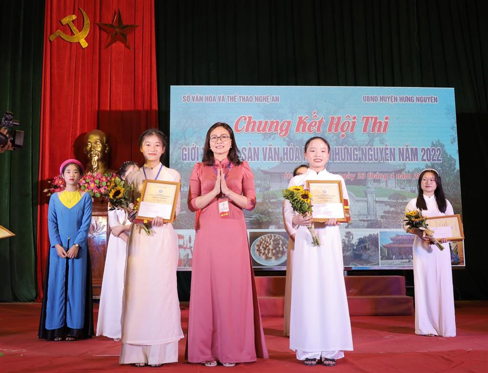 Đồng chí Lê Thu Hiền – Giám đốc Bảo tàng Xô viết Nghệ Tĩnh trao giải Nhì của Hội thi