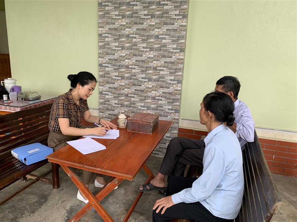 Ảnh: Cán bộ đoàn công tác đang khai thác thông tin tư liệu tại gia đình các cán bộ lão thành cách mạng 1930-1931