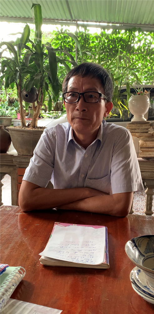 Ảnh: Thân nhân đồng chí Đậu Tuân đang trả lời phỏng vấn của đoàn