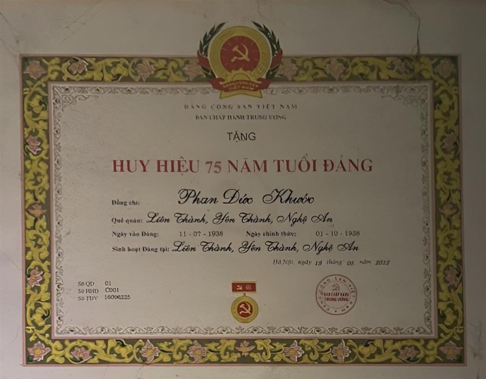 Ảnh: Huy hiệu 75 năm tuổi Đảng của đ/c Phan Đức Khước