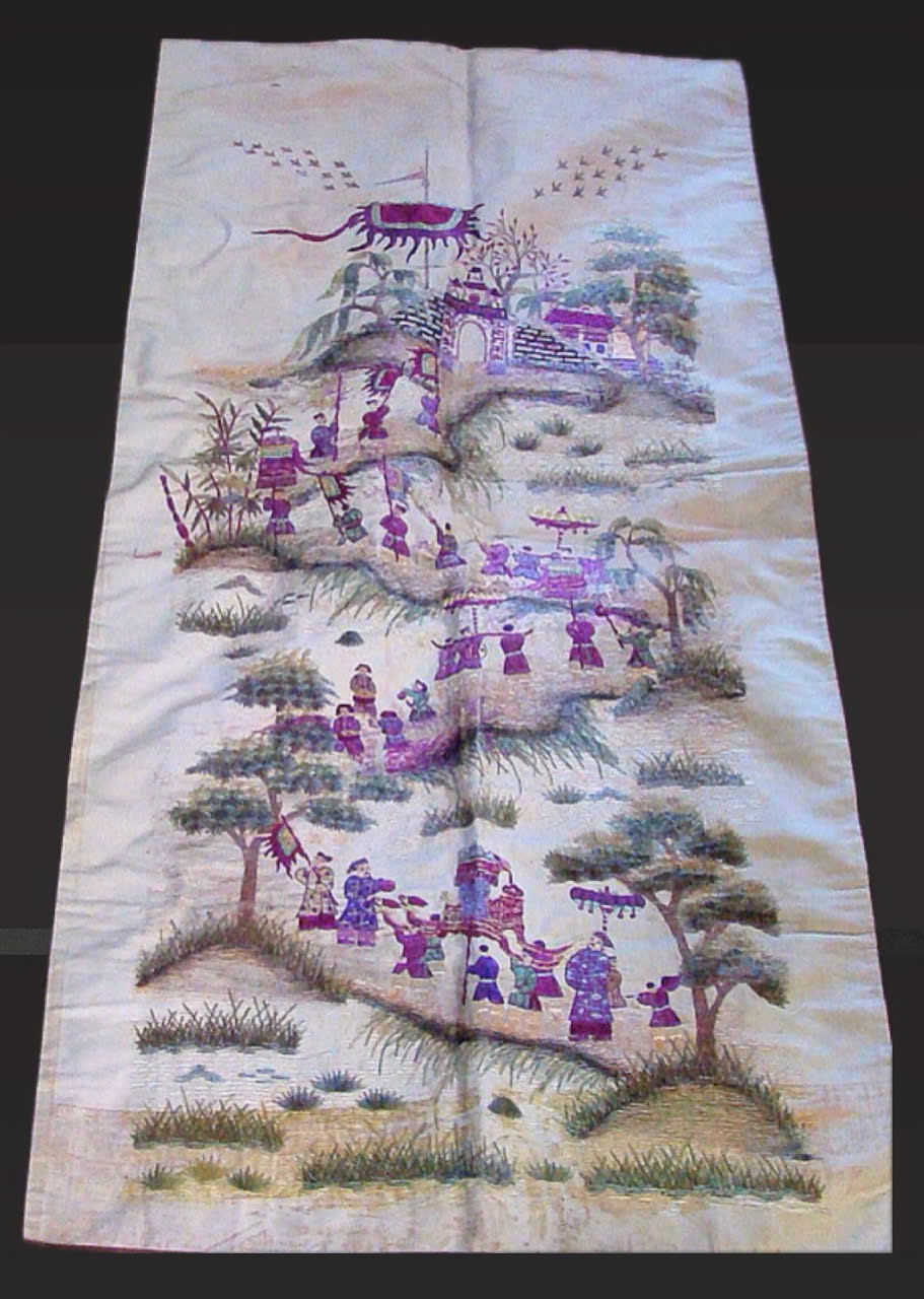 Trong tranh thêu thời phong kiến, các đề tài lễ hội như đám rước, vinh quy bái tổ và mừng thọ mang ý nghĩa sâu sắc về văn hóa và đạo lý truyền thống.