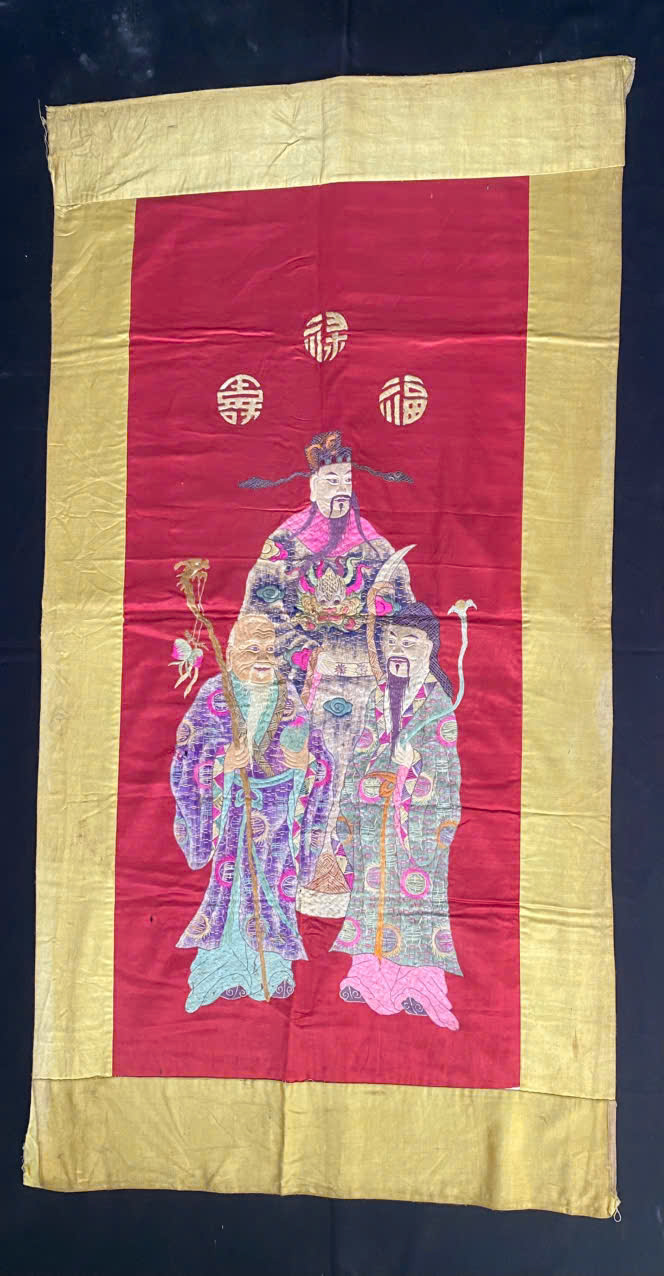 Bức thứ 2: Tam đa (Phúc –Lộc – Thọ) là bức tranh nghệ thuật thêu 3 nhân vật gồm ông Thọ (râu dài, tay cầm gậy đào), Quan Lộc (quan phục), Phúc (tay cầm thỏi vàng hoặc ngọc như ý). Bức tranh này thường treo ở nhà thờ họ, từ đường, phòng thờ, đình chùa mang giá trị cốt lõi mà con người Á Đông hướng tới con cháu đầy đàn, hạnh phúc, tài lộc thăng tiến công danh, sống lâu mạnh khỏe. Được dùng trong dịp Tết, mừng thọ và khánh ý lớn.