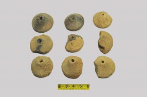 Ảnh: Dọi xe chỉ hình nón cụt Ảnh: Mảnh miệng gốm bị vỡ