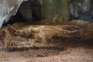 Ảnh: Địa tầng khai quật hang Mó năm 2018