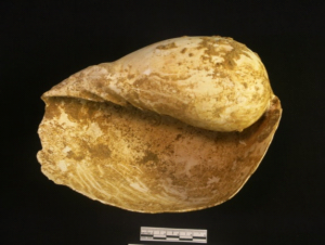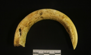 Xương, răng, vỏ nhuyễn thể: có tổng số 57 mảnh xương răng, vỏ nhuyễn thể trong đó có răng của lợn, hươu nai và trâu bò. Số lượng mảnh xương so với mảnh răng khá ít. Ngoài xương răng động vật, di chỉ còn có các mảnh vỏ của một số loại ốc, trai có kích thước lớn.Ảnh: Răng nanh lợn rừng có vết chế tác Ảnh: Ốc Melo melo
