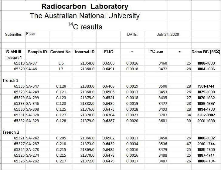 Ảnh: Một số kết quả niên đại AMS Đền Đồi