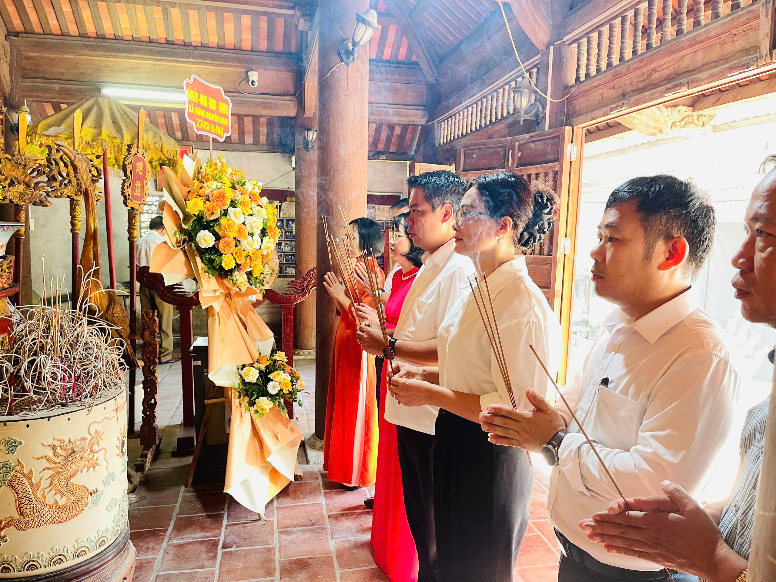 Lãnh đạo UBND xã Hưng Nguyên Nam - và Bảo tàng Nghệ An Xô Viết Nghệ tĩnh dâng hương tại đền Xuân Hòa.