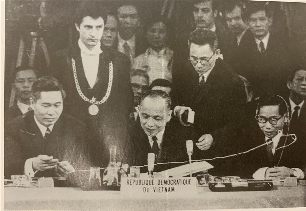 Ảnh: Phó Thủ tướng kiêm Bộ trưởng Bộ Ngoại giao Nguyễn Duy Trinh thay mặt Chính phủ nước Việt Nam DCCH ký Định ước của Hội nghị quốc tế về Việt Nam