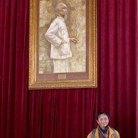 Ảnh: Họa sỹ Lê Huy Tiếp trao tặng thiết kế logo cho Bảo tàng Xô viết Nghệ Tĩnh
