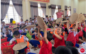 Ngoài ra, các em còn được cùng nhau múa hát, giao lưu, tham gia đố vui có thưởng...Những món quà nhỏ bé thú vị như bút màu, gấu bông, móc khóa...tạo cho các em sự thích thú, hấp dẫn.