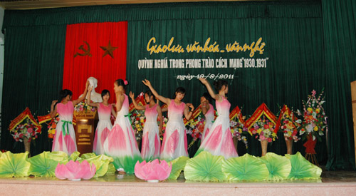 Buổi lễ được mở đầu bằng những tiết mục văn nghệ chào mừng ngày Lễ kỷ niệm 66 năm cách mạng Tháng Tám và Quốc khánh mồng 2-9 với những ca khúc ngợi ca về Đảng, Bác Hồ và quê hương, đất nước. Kết hợp với hoạt động của Bảo tàng Xô Viết Nghệ Tĩnh, Hội văn nghệ dân gian Nghệ An đã tổ chức trao bằng nghệ nhân dân gian cho 2 nghệ nhân hát trống quân của xã. Đây là một sự tôn vinh truyền thống văn hóa của nhân dân Quỳnh Nghĩa nói chung và những người có công bảo tồn, lưu giữ, phát huy vốn văn hóa dân gian của địa phương. Ông Ninh Viết Giao - chủ tịch Hội văn nghệ dân gian Nghệ An đã trao bằng cho 2 nghệ nhân của xã.