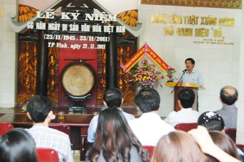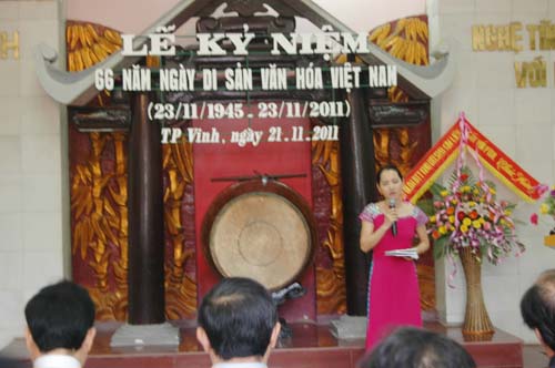 Trong không khí cả nước đang hân hoan đón nhận sự kiện Vịnh Hạ Long được tổ chức New7Wonders công nhận là 1 trong 7 Kỳ quan Thiên nhiên mới của thế giới, Sở Văn hóa Thể thao và Du Lịch Nghệ An, Liên Chi Hội Di sản Văn hóa Nghệ An đã long trọng tổ chức Lễ kỷ niệm 66 năm ngày Di sản Việt Nam vào sáng ngày 21/11/2011 tại Bảo tàng Xô Viết Nghệ Tĩnh.
