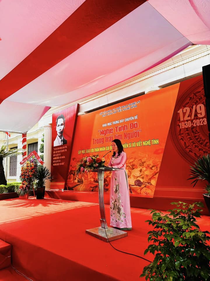 Nằm trong chuỗi hoạt động kỷ niệm 93 năm ngày Xô viết Nghệ Tĩnh (12/9/1930 -12/9/2023), được sự chỉ đạo của Sở Văn hóa và Thể thao Nghệ An, chiều ngày 8/9 Bảo tàng Xô Viết Nghệ Tĩnh đã tổ chức khai mạc Trưng bày chuyên đề “Nghệ Tĩnh Đỏ trong trái tim Người” và gặp mặt, giao lưu với thân nhân các chiến sỹ Xô viết Nghệ Tĩnh.