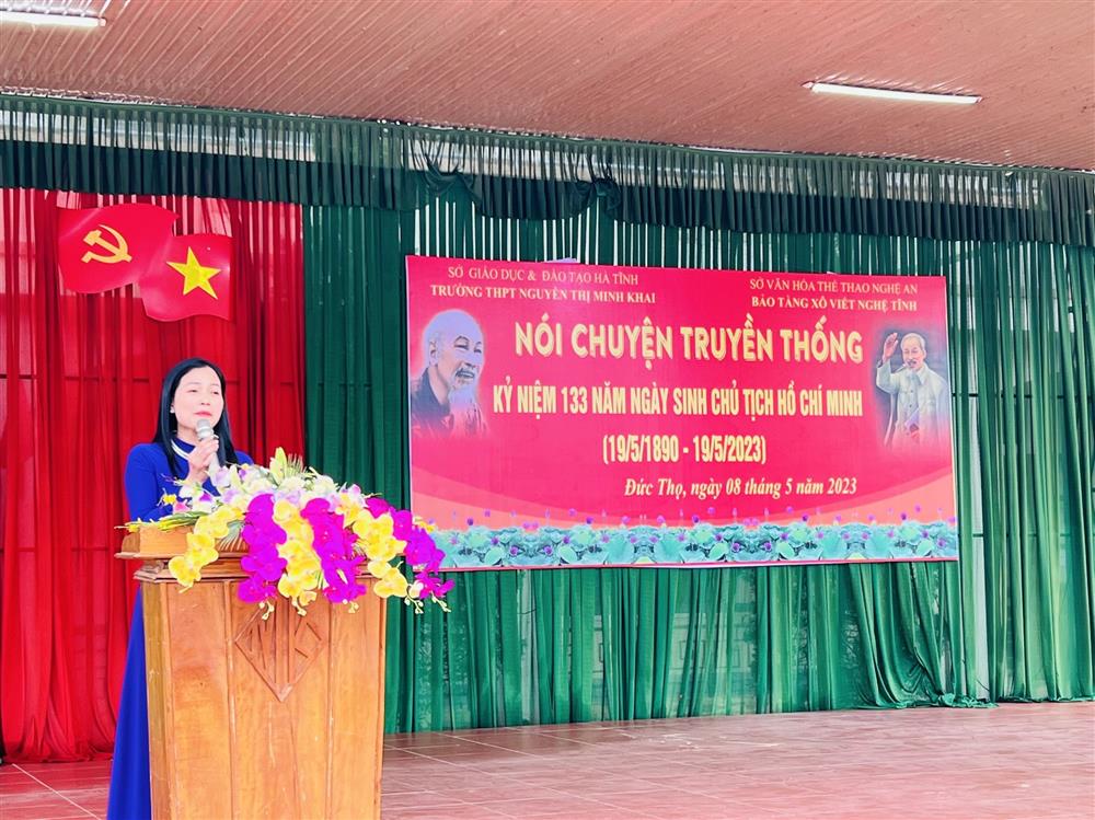 Nằm trong chuỗi các hoạt động kỷ niệm 133 năm ngày sinh Chủ tịch Hồ Chí Minh (19/5/1890-19/5/2023), Bảo tàng Xô viết Nghệ Tĩnh phối hợp với trường THPT Nguyễn Thị Minh Khai, huyện Đức Thọ và trường THPT Lê Hữu Trác, huyện Hương Sơn, tỉnh Hà Tĩnh long trọng tổ chức buổi nói chuyện truyền thống với chủ đề "Chủ tịch Hồ Chí Minh với Xô viết Nghệ Tĩnh và quê hương Hà Tĩnh".