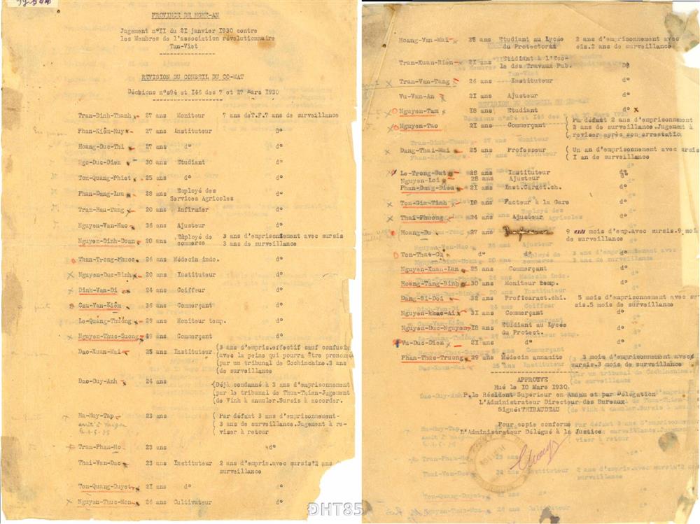 Trong khuôn khổ bài viết này, tác giả dựa theo Bản án được Viện Cơ mật chuẩn y, tài lệu gốc bằng tiếng Pháp, có đóng dấu đỏ do Léon Thibaudeau ký, được lưu tại Kho Kiểm kê, bảo quản, Bảo tàng Xô Viết Nghệ Tĩnh nhằm cung cấp đến độc giả, người nghiên cứu một nguồn tư liệu mới.