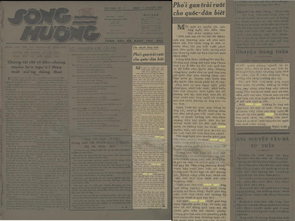 Ảnh: Bài “Phơi gan trải ruột cho quốc dân biết” của tác giả Nghị Toét - Phan Đăng Lưu trên tờ “Sông Hương tục bản” số 4 ngày 10 tháng 7 năm 1937