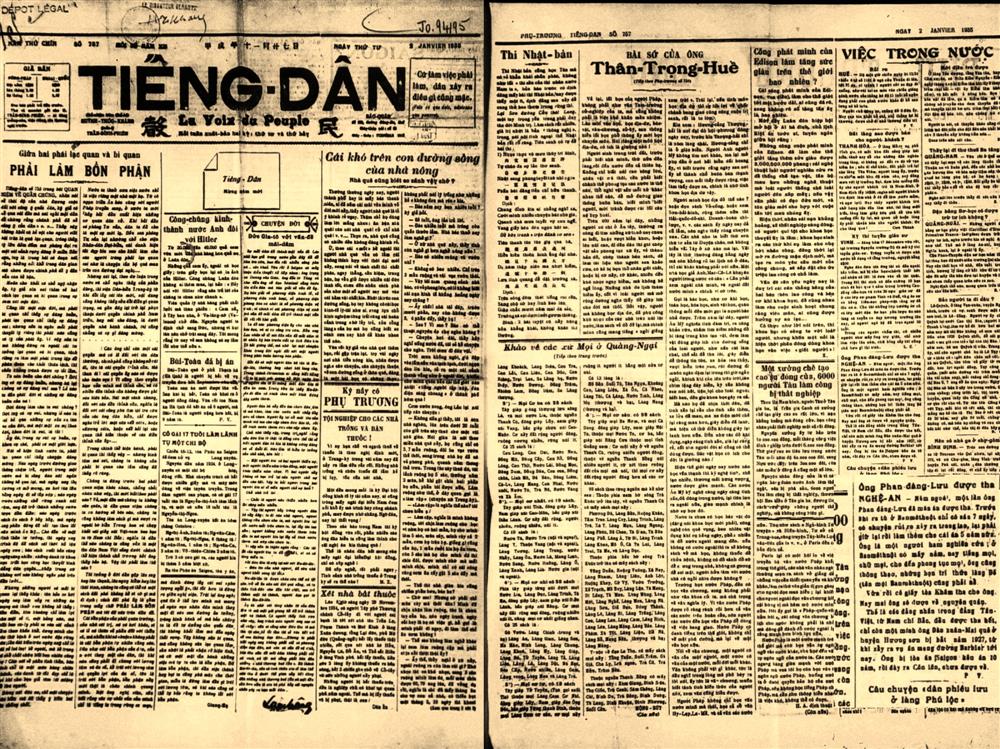 Ảnh: Cụ Huỳnh Thúc Kháng viết về đồng chí Phan Đăng Lưu trên báo Tiếng dân số 757 ra ngày 2 tháng 1 năm 1935