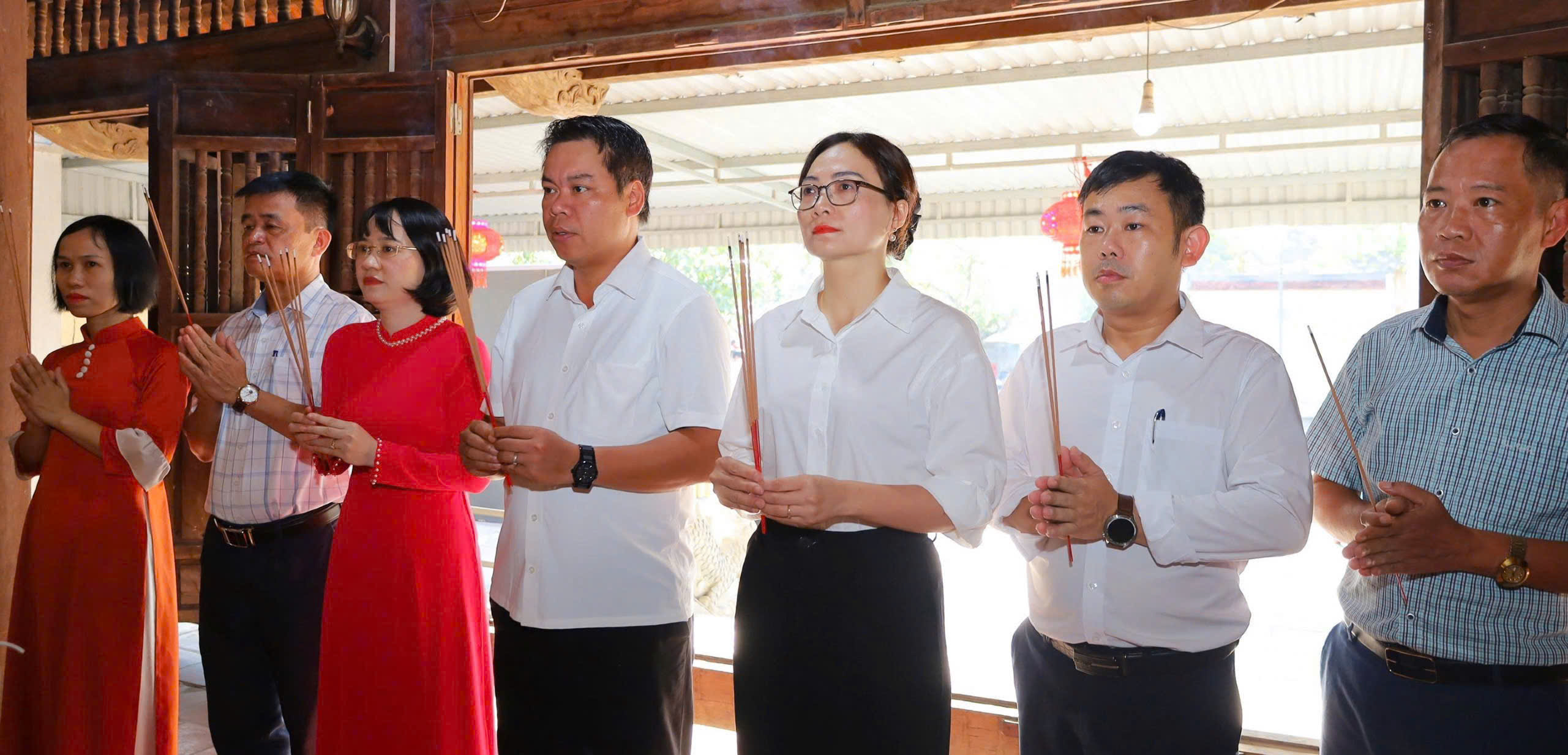 Lãnh đạo xã Hưng Nguyên Nam và Bảo tàng Nghệ An - Xô viết Nghệ Tĩnh dâng hương tại đền Xuân Hòa