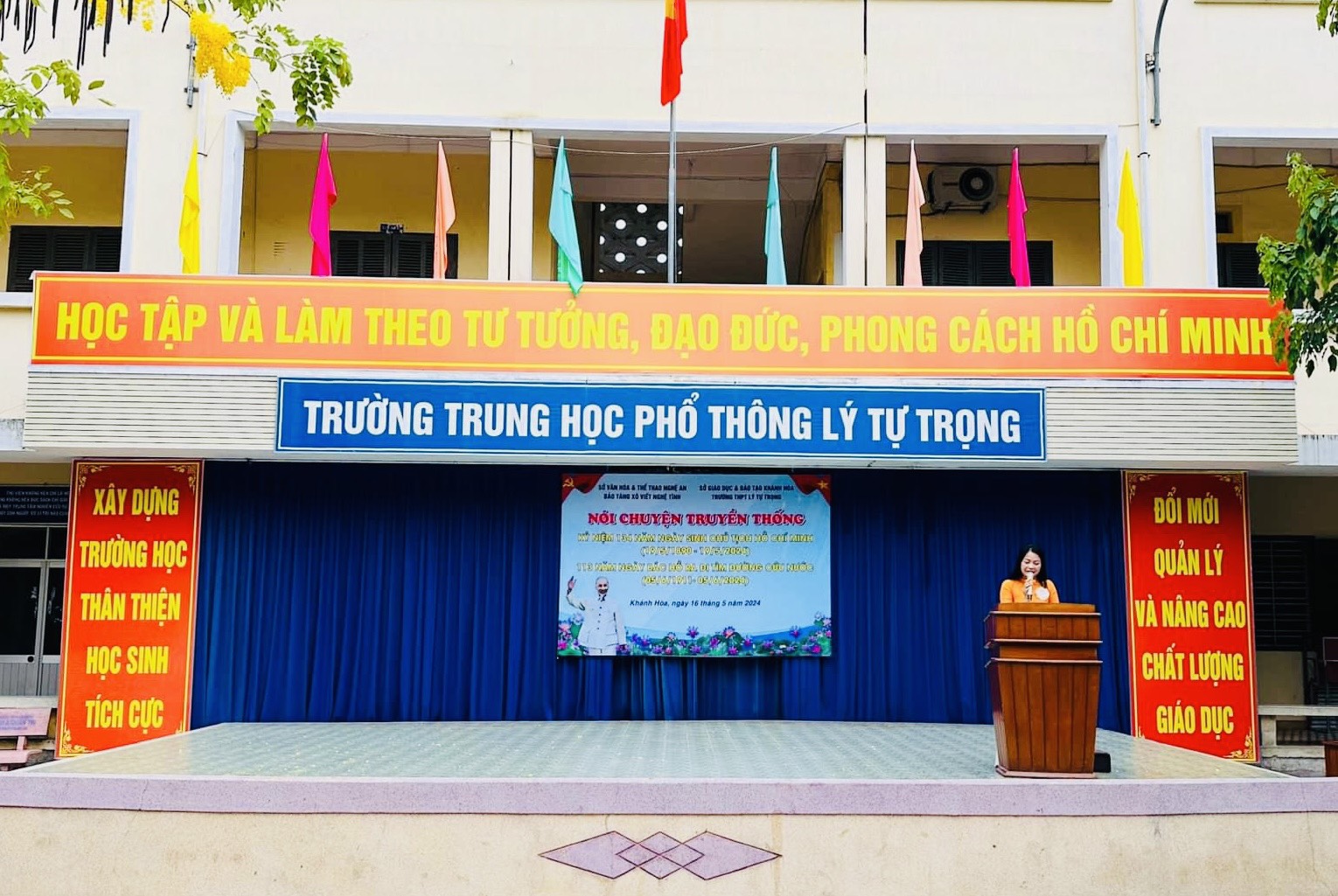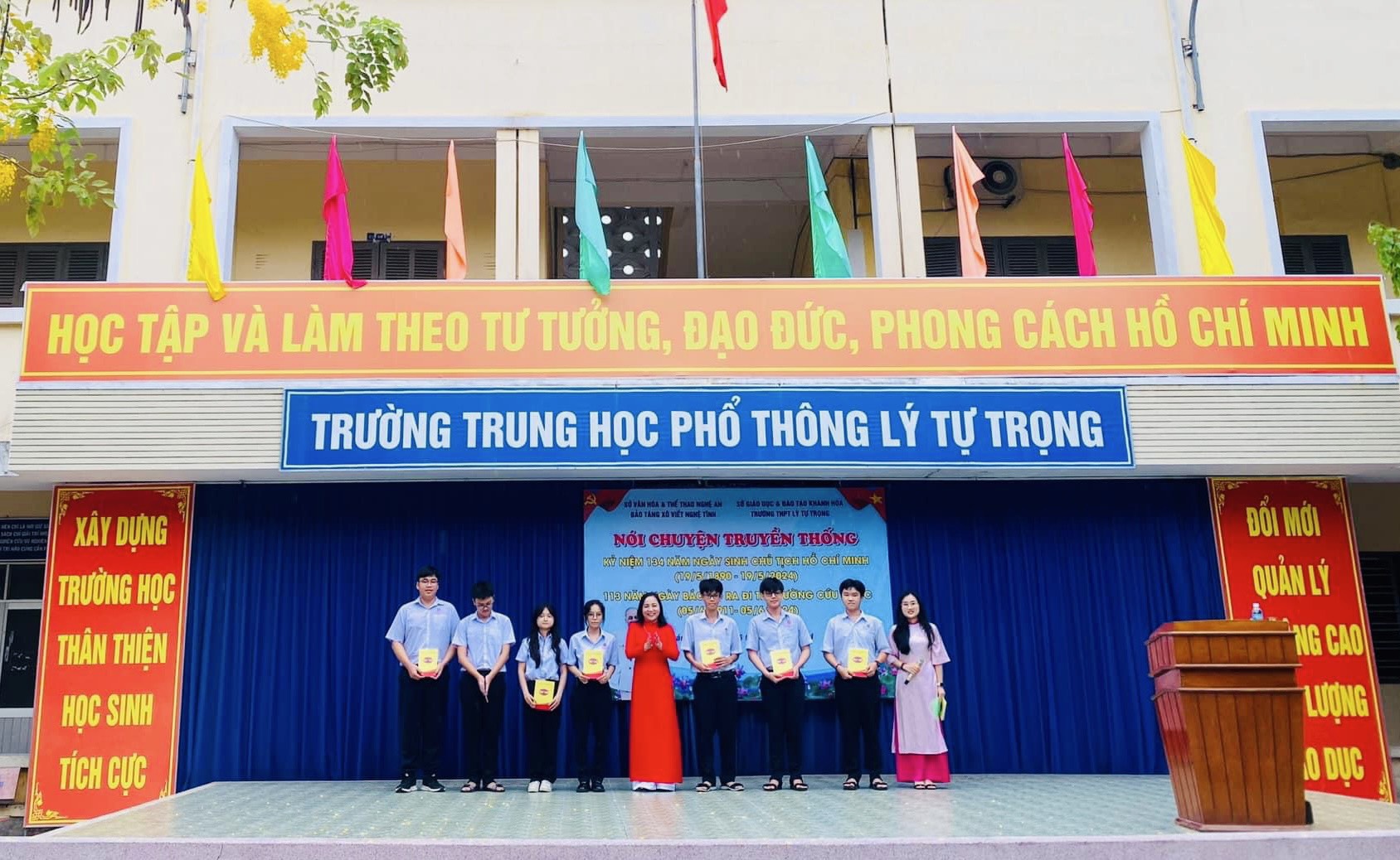 Hoà chung trong không khí cả nước chào mừng kỷ niệm 134 năm Ngày sinh Chủ tịch Hồ Chí Minh (19/5/1890-19/5/2024) và hướng tới kỷ niệm 113 năm Ngày Bác Hồ ra đi tìm đường cứu nước (05/6/1911- 05/6/2024), Bảo tàng Xô viết Nghệ Tĩnh phối hợp với trường THPT Lý Tự Trọng, thành phố Nha Trang, tỉnh Khánh Hòa tổ chức buổi nói chuyện truyền thống về cuộc đời, thân thế, sự nghiệp cách mạng của lãnh tụ Nguyễn Ái Quốc cho giáo viên, học sinh của trường.