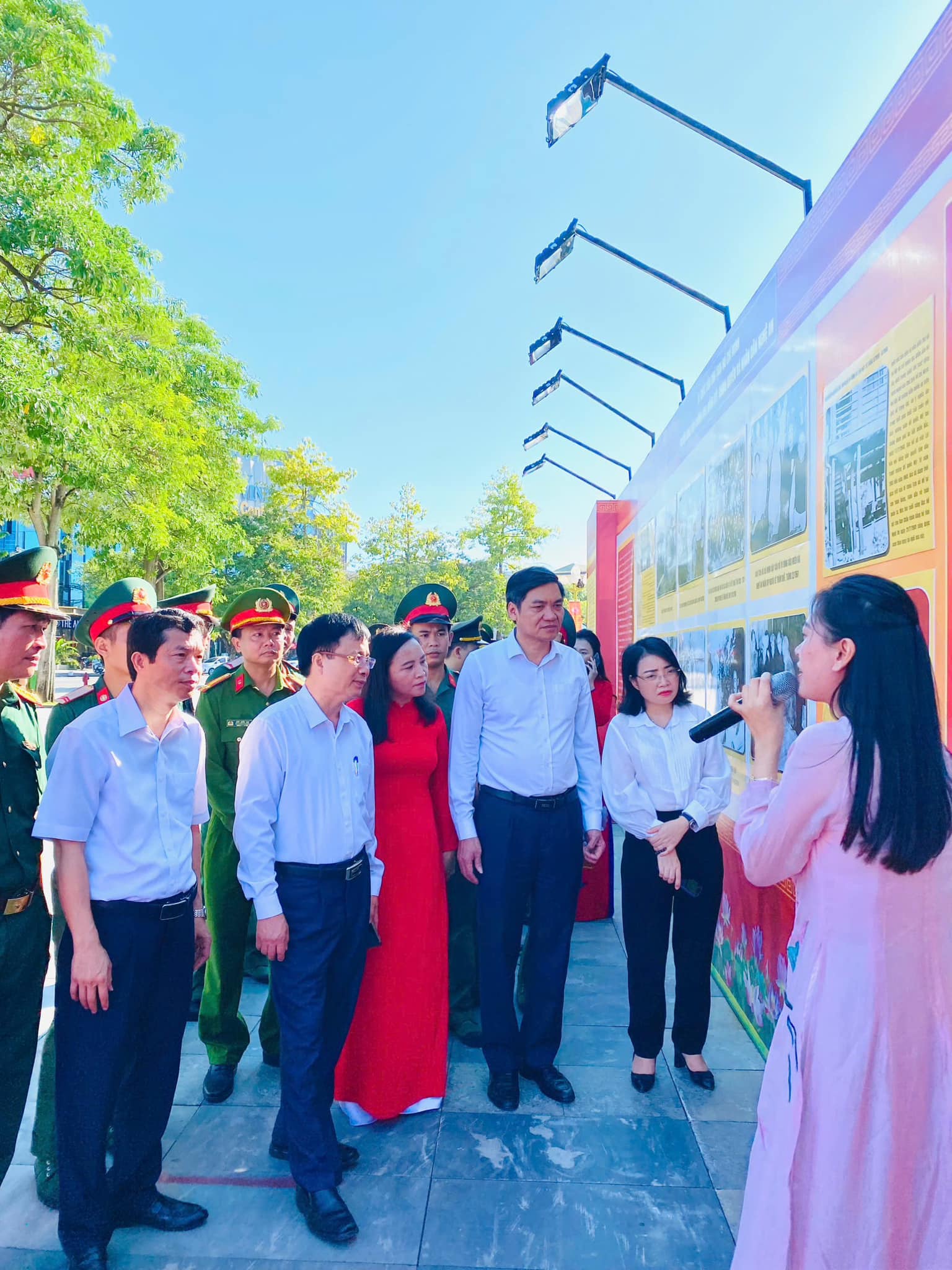 Sau phần trao biển tiếp nhận cây xanh tại Quảng trường, tặng hoa cho nhà tài trợ, cắt băng khai mạc trưng bày chuyên đề, các đại biểu đã tiến hành tham quan, nghe thuyết minh chuyên đề.